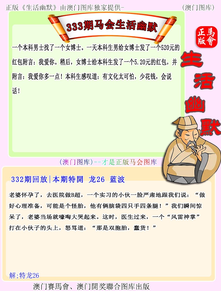 333期: 澳门六合彩 『幽默猜测图』已更新